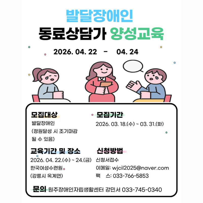2026년 발달장애인 동료상담가 양성교육 참여자 모집
