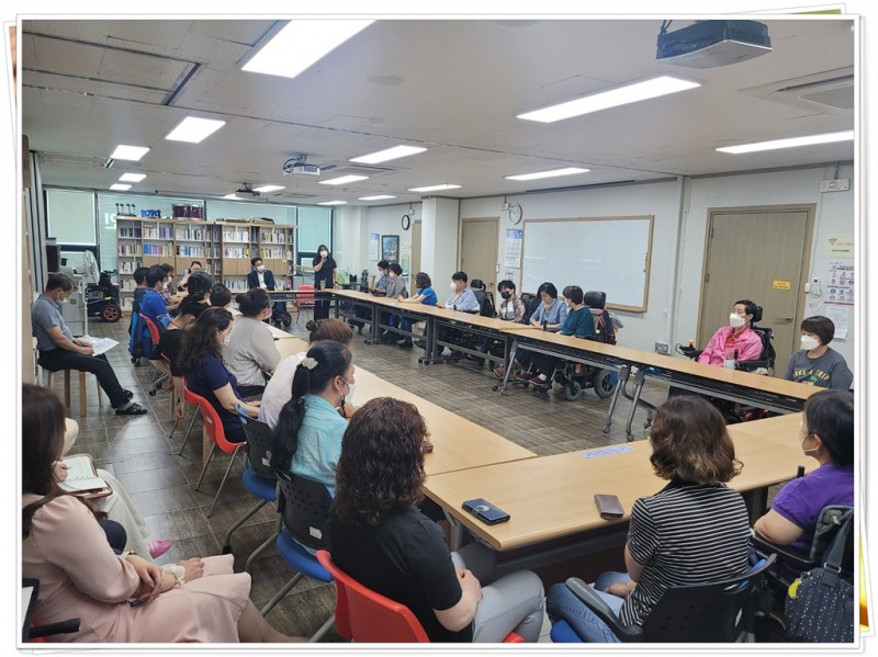 - 코로나 감염예방을 위한 철저한 개인위생관리 및 외부활동 자제 - 실내 마스크 착용과 식사 시 대화 자제 6월 13일부터 20일까지 발달·중증장애인 참사분향소 6월 22일부터 24일까지 장애인생활체육대회 |