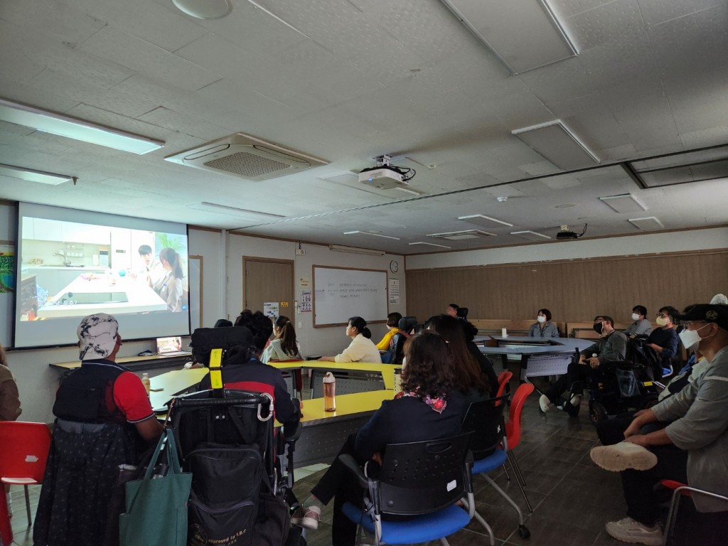 9월 16(화)에는, 제18회 원주장애인인권영화제(10월 5일)를 앞두고 사무국장님께서 역대 원주장애인인권영화제 관련 영상을 보여주셨습니다. 원주장애인자립생활센터가 원주장애인인권영화제와 함께 걸어온 길을 돌아보고 추억 하는 시간이 되었습니다. 원주장애인인권영화제의 역사 속에 있는 기존 사람들은 추억을 소환하고, 영화제를 처음 접하는 사람들은 신기한 눈으로 관심을 갖고 바라보는 모습이었습니다. 해가 갈수록 원주장애인인권영화제의 규모가 커지는 것으로 보아 장애인과 관련한 큰 행사임을 한 눈에 알 수 있었습니다. 열심히 준비 중인, 제 18회 원주장애인인권영화제가 성황리에 마무리될 수 있기를 함께 기원합니다.